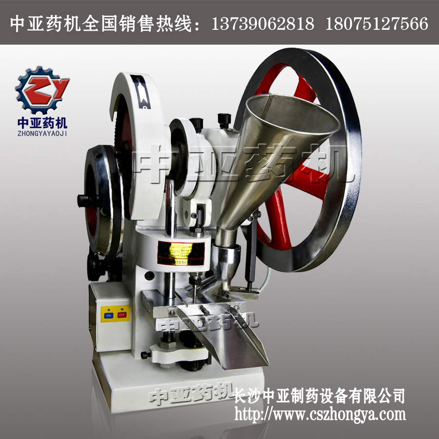 小型粉末壓片機是一種小型臺式電動連續(xù)沖壓機(無電時可手搖壓片),能將各種顆粒狀、晶體狀或者流動性好的粉狀原料壓制成圓片狀、圓柱狀、球狀、凸面、凹面和其他各種幾何形狀的產(chǎn)品(如方形、三角、橢圓、囊形等),還可壓制帶有文字、商標(biāo)、圖案的產(chǎn)品,適合于制藥、醫(yī)藥公司、大學(xué)研究所、保健品、食品、農(nóng)業(yè)、化工、電子電池、冶金陶瓷等行業(yè)作為小批量生產(chǎn)和科研實驗教學(xué)使用。本機只裝一付模具,物料的充填深度、壓制厚度均可調(diào)節(jié),也即產(chǎn)品的重量、厚度及硬度均可調(diào)節(jié),只要更換不同的模具就可壓制不同的產(chǎn)品。
