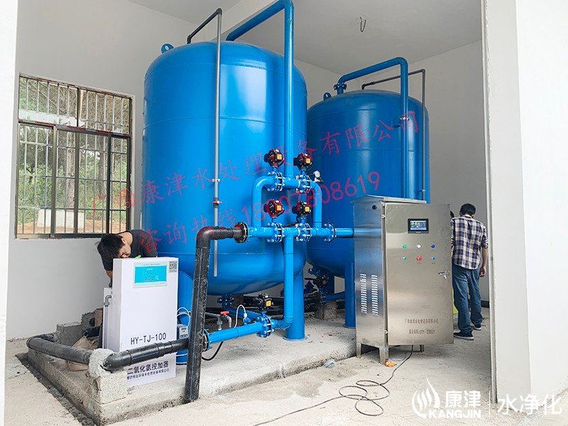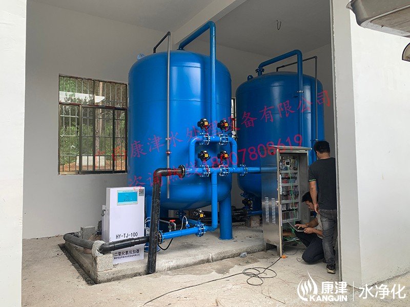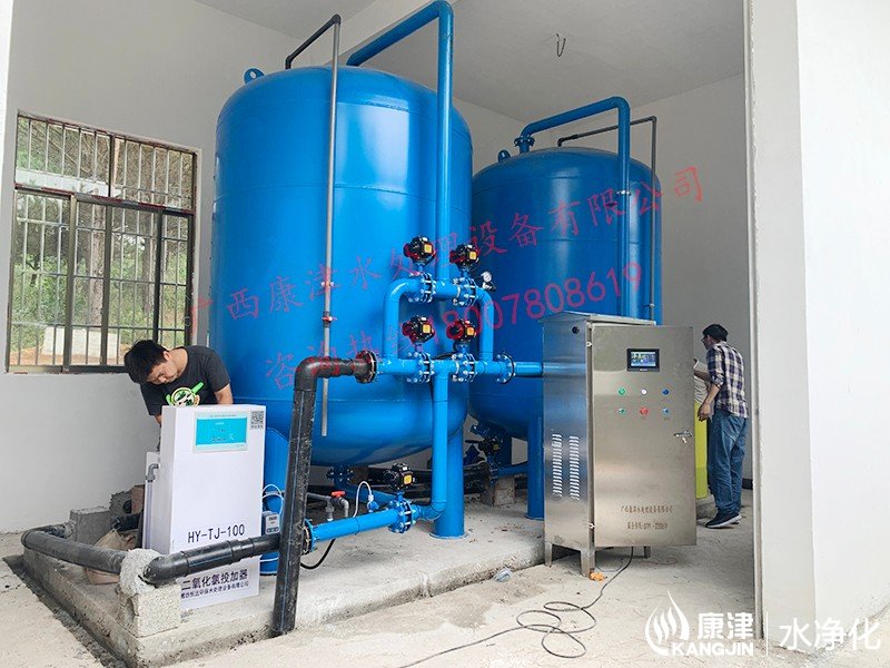 工藝流程:山泉水-絮凝投加器-石英砂過濾器-二氧化氯加藥器-用水點(diǎn)