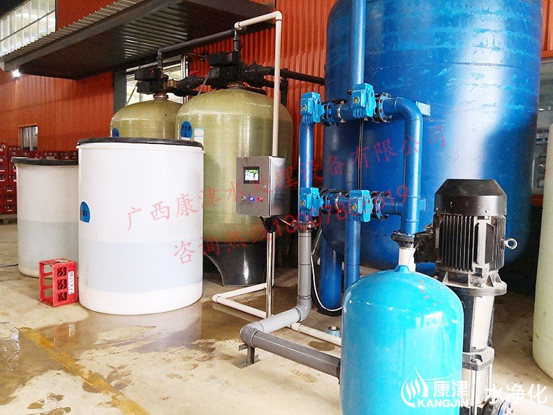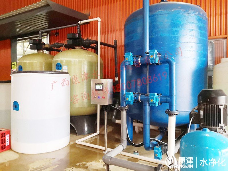 工藝流程:井水-原水箱-錳砂過濾器-石英砂過濾器-活性炭過濾器-軟化水-凈水箱