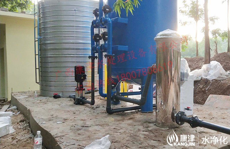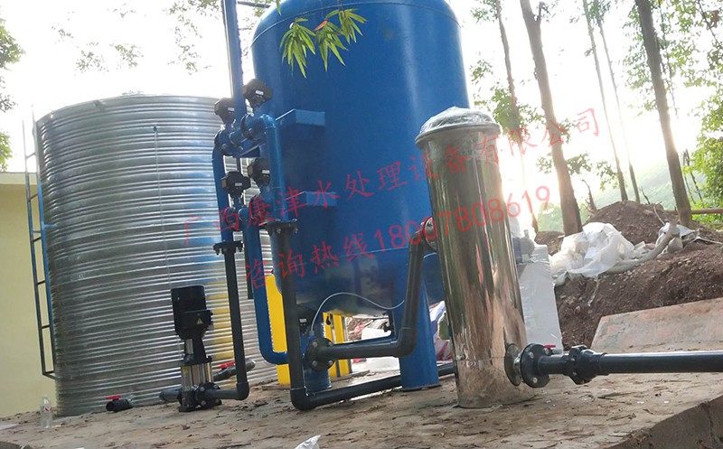 設備是壓力式的,其原理是當原水自上而下通過濾料時,水中懸浮物由于吸附和機械阻流作用被濾層表面截留下來;當水流進濾層中間時,由于濾料層中的砂粒排列的更緊密,使水中微粒有更多的機會與砂粒碰撞,于是水中凝絮物、懸浮物和砂粒表面相互粘附,水中雜質截留在濾料層中,從而得到澄清的水質。經過濾后的出水懸浮物可在3毫克/升以下。