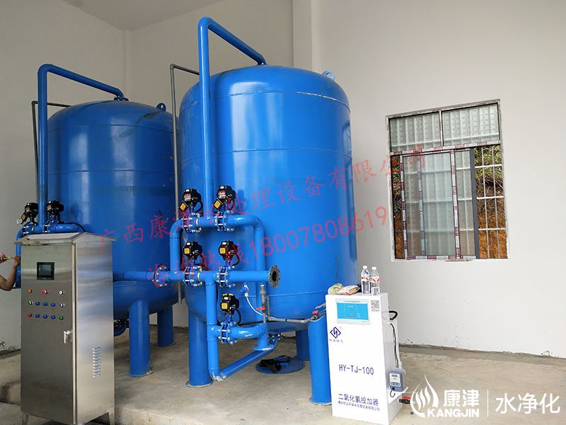 工藝流程:河水-石英砂過(guò)濾器(二級(jí)過(guò)濾)-二氧化氯消毒