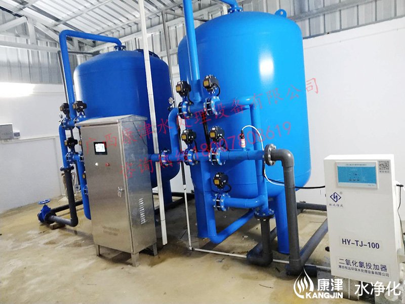 項目名稱:貴港市六吉地下水凈化工程 設(shè)備名稱:20噸壓力式凈水設(shè)備 工藝流程:地下水-石英砂過濾器-二氧化氯消毒-加壓泵-高位水塔 產(chǎn)品型號:KJ-DF-1500...