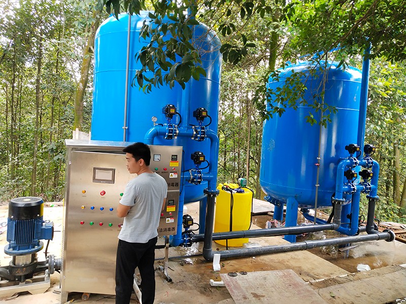 本方案主要針對原水為河水、地下水、自來水等地區(qū),水源通常比較渾濁,水面漂浮臟東西、樹葉、水藻等,尤其在暴雨季節(jié),水中泥沙量增加,雜質多等情況。因此利用填料來降低水中 濁度,截留除去水中懸浮物、有機物膠質顆粒,是給水凈化的重要水處理設備。康泉水處理為根據實際用途情況制定以下解決方案。用水處理量每小時約50噸。