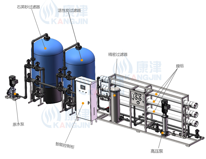 一、反滲透設(shè)備凈化工作原理與流程