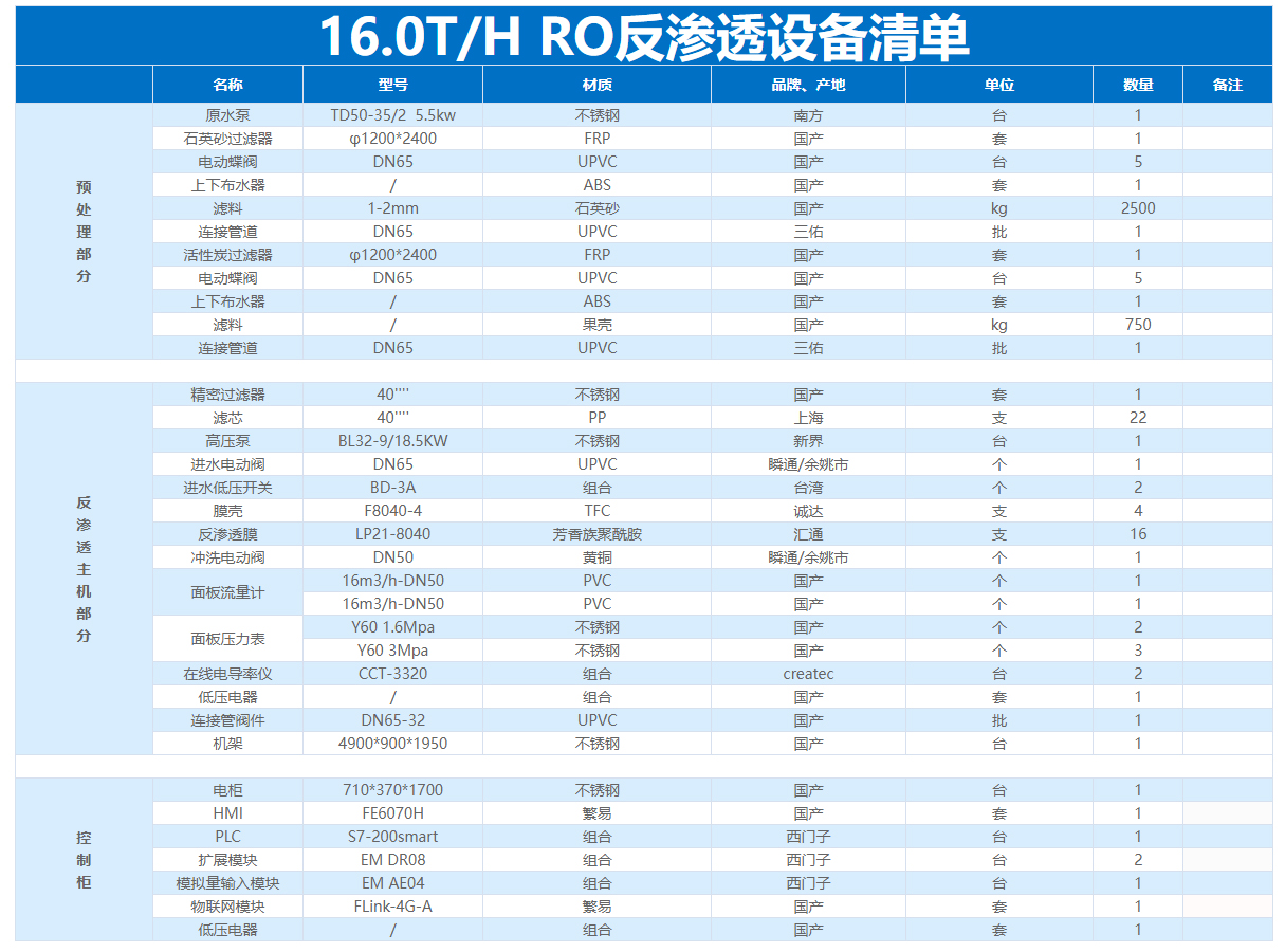 1、純水設備相關設備通過液位聯(lián)鎖實現(xiàn)自動運行,具備自動功能(自動制水、自動沖洗、原水缺水/水箱滿水自動停機、高低壓報警等)。