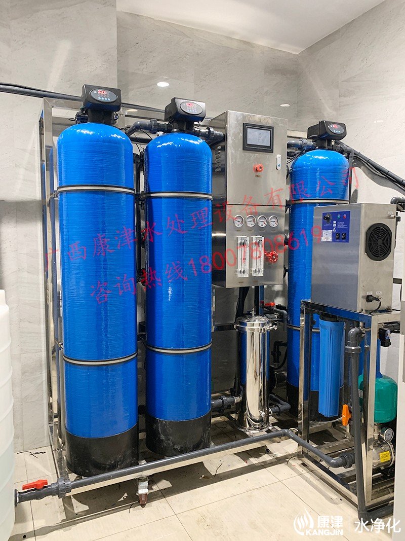 工藝流程:原水箱-原水泵-石英砂過濾器-活性炭過濾器-樹脂過濾器-精密過濾器-反滲透設(shè)備-軟水鹽-凈水箱-變頻供水回水殺菌系統(tǒng)-用水點