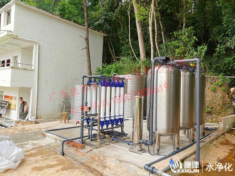 工藝流程:地下水-原水箱-原水泵-錳砂過(guò)濾器-石英砂過(guò)濾器-活性炭過(guò)濾器-精密過(guò)濾器-超濾設(shè)備-紫外線殺菌-凈水箱-變頻供水-用水點(diǎn)
