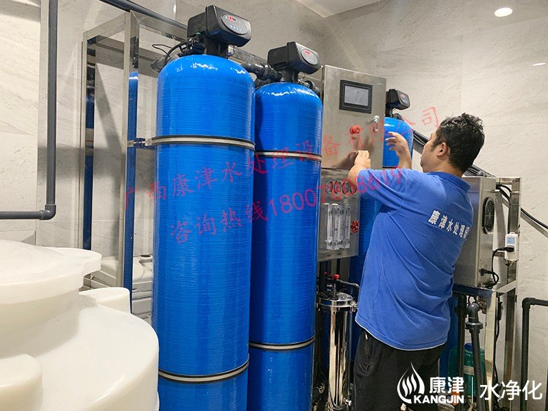 工藝流程:原水箱-原水泵-石英砂過濾器-活性炭過濾器-樹脂過濾器-精密過濾器-反滲透設(shè)備-軟水鹽-凈水箱-變頻供水回水殺菌系統(tǒng)-用水點