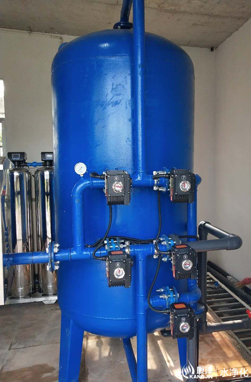 6月中旬在三塘鎮(zhèn)六村完工一臺(tái)壓力式凈水設(shè)備,該設(shè)備采用碳鋼罐體φ1000*2500系統(tǒng)控制為PLC程序控制器、人機(jī)界面觸摸屏;10套電動(dòng)閥門材質(zhì):碳鋼閥體采用304不銹鋼板。整套凈水設(shè)備的過濾流程為原水箱-加藥設(shè)備-原水泵-多介質(zhì)過濾器。