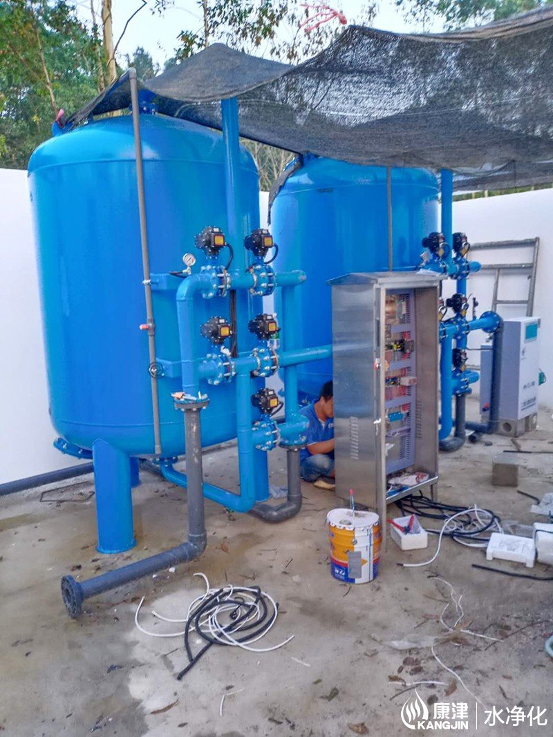 設(shè)備是壓力式的,其原理是當(dāng)原水自上而下通過濾料時(shí),水中懸浮物由于吸附和機(jī)械阻流作用被濾層表面截留下來;當(dāng)水流進(jìn)濾層中間時(shí),由于濾料層中的砂粒排列的更緊密,使水中微粒有更多的機(jī)會(huì)與砂粒碰撞,于是水中凝絮物、懸浮物和砂粒表面相互粘附,水中雜質(zhì)截留在濾料層中,從而得到澄清的水質(zhì)。經(jīng)過濾后的出水懸浮物可在3毫克/升以下。