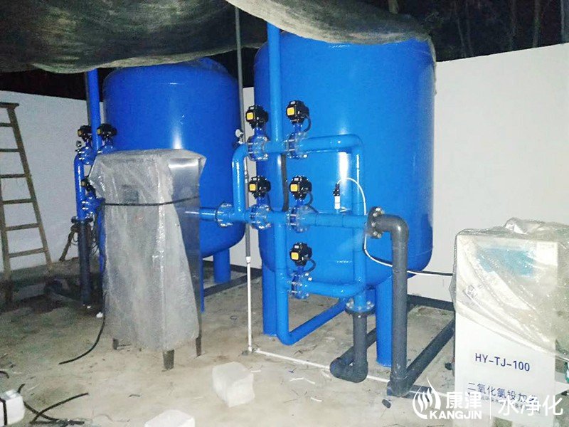 工藝流程:地下水-石英砂過濾器-二氧化氯消毒-加壓泵-高位水塔