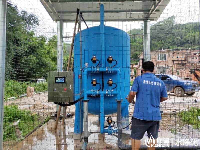 設備是壓力式的,其原理是當原水自上而下通過濾料時,水中懸浮物由于吸附和機械阻流作用被濾層表面截留下來;當水流進濾層中間時,由于濾料層中的砂粒排列的更緊密,使水中微粒有更多的機會與砂粒碰撞,于是水中凝絮物、懸浮物和砂粒表面相互粘附,水中雜質截留在濾料層中,從而得到澄清的水質。經過濾后的出水懸浮物可在3毫克/升以下。