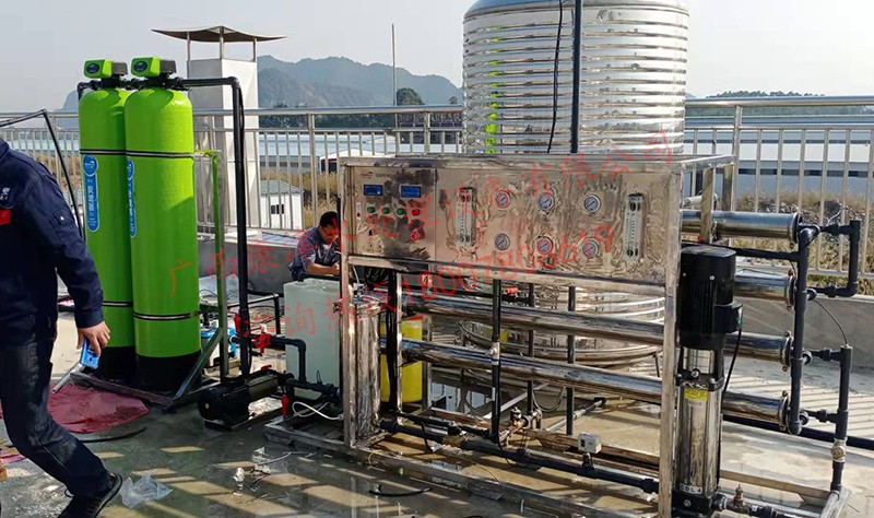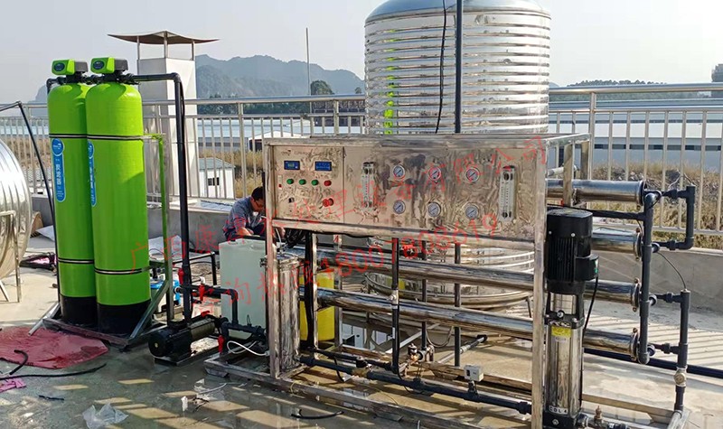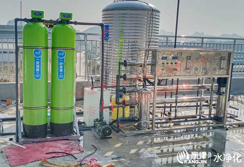 工藝流程:原水箱-原水泵-石英砂過濾器-活性炭過濾器-精密過濾器-反滲透設備-凈水箱