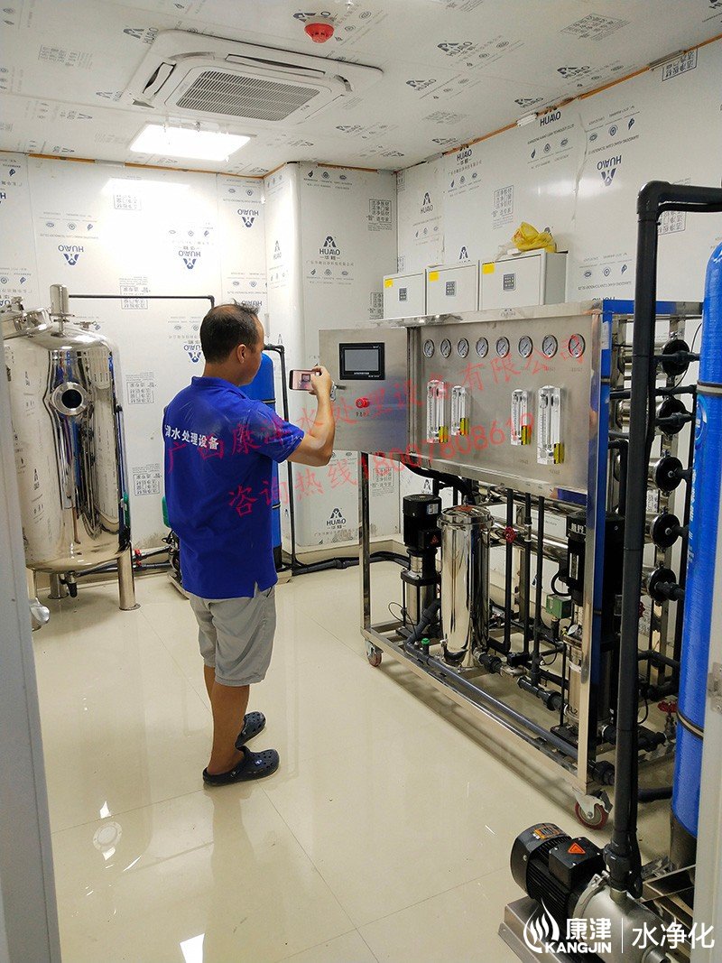 工藝流程:原水-原水泵-石英砂過(guò)濾器-活性炭過(guò)濾器-反滲透設(shè)備-精密過(guò)濾器-軟化水設(shè)備-凈水箱-變頻供水回水殺菌系統(tǒng)-用水點(diǎn)