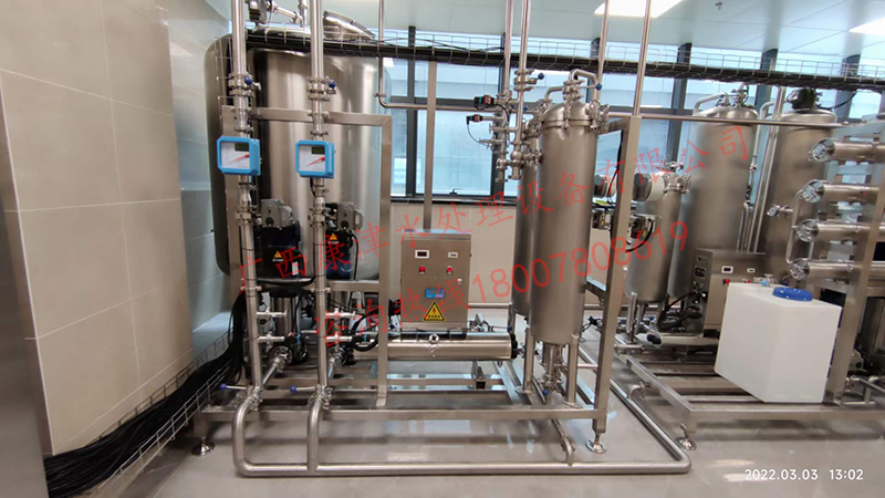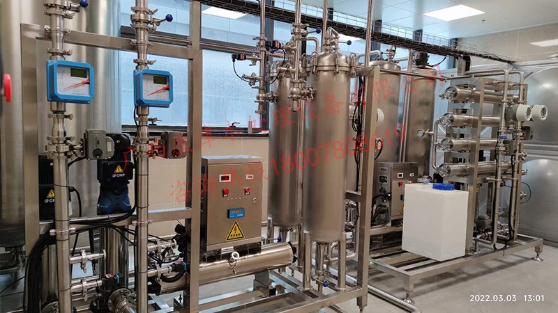 工藝流程:原水箱-原水泵-石英砂過濾器-活性炭過濾器-精密過濾器-紫外線殺菌器-增壓泵-反滲透膜組-加藥系統(tǒng)-無菌水箱-紫外線消毒殺菌器-除菌過濾器-變頻恒壓供水系統(tǒng)-用水點(diǎn)